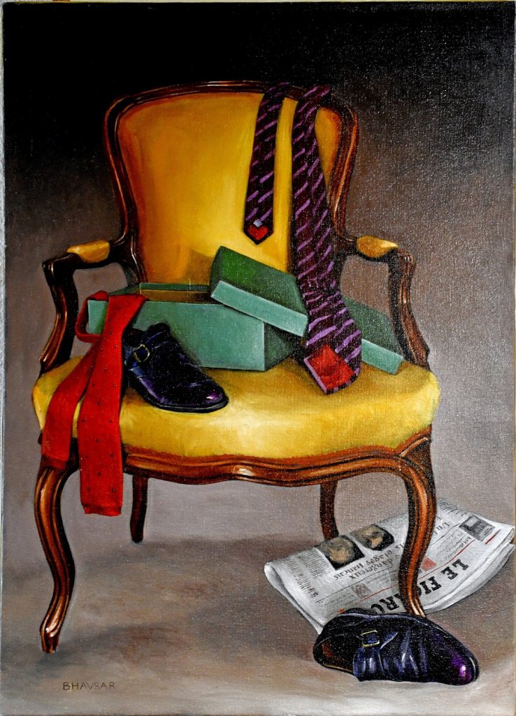 Le prix des Amis de Moret et de sa Région, décerné par la Président de notre Association, par Mme Régine DUBOS, Commissaire de l’exposition et par les membres du Conseil d’Administration, a été attribué à l’artiste François BHAVSAR pour son tableau Le Fauteuil.